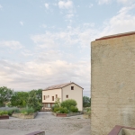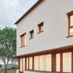 La volumetría de este nuevo edificio es muy similar a la del Centro de Interpretación, tanto en dimensiones como en los elementos de fachada. Ambos tienen cubiertas a dos aguas y perforaciones de dimensiones similares en sus fachadas. A nivel de materiales el concepto de envolvente continua es el mismo, pero en esta ocasión el gunitado de hormigón deja paso a una fachada de albañilería enfoscada con un mortero de color.